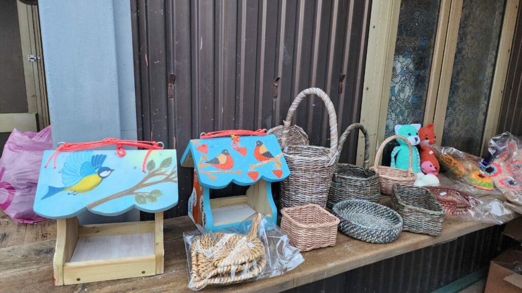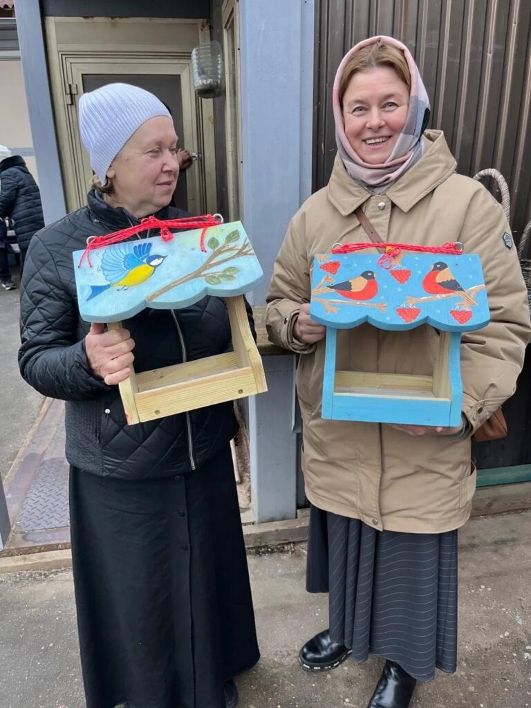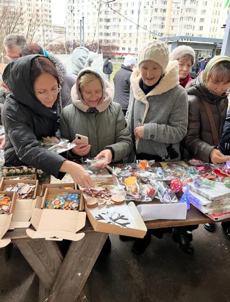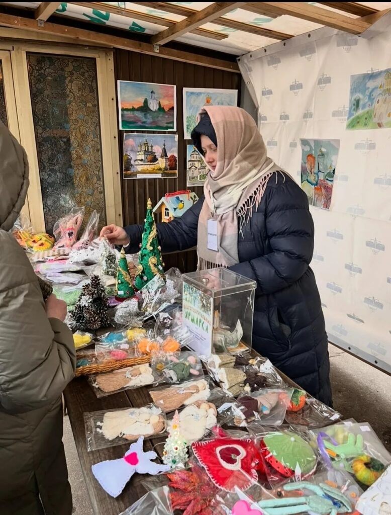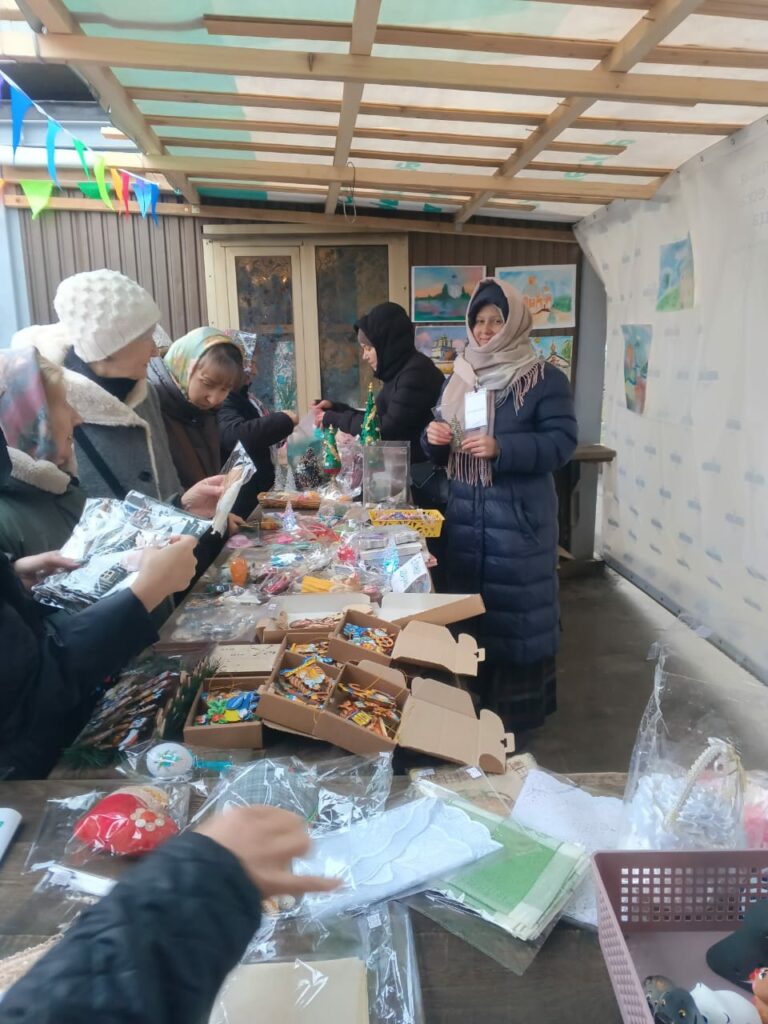 Мастерицы и рукодельницы постарались на славу! Много чего умеют делать своими руками наши прихожанки. Это елочные игрушки из ваты , из эко лозы, тряпичные куклы, зверюшки, вязанные носки, варежки, плетеные корзины, кормушки расписные, варенье из малины, земляники, вишни , сливы, из инжира, вкусный ароматный чай из самовара, с выпечкой испеченной также нашими прихожанами, все было замечательно.
