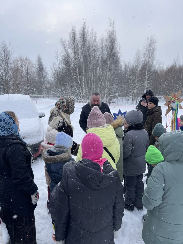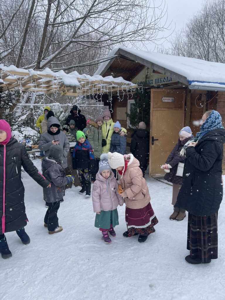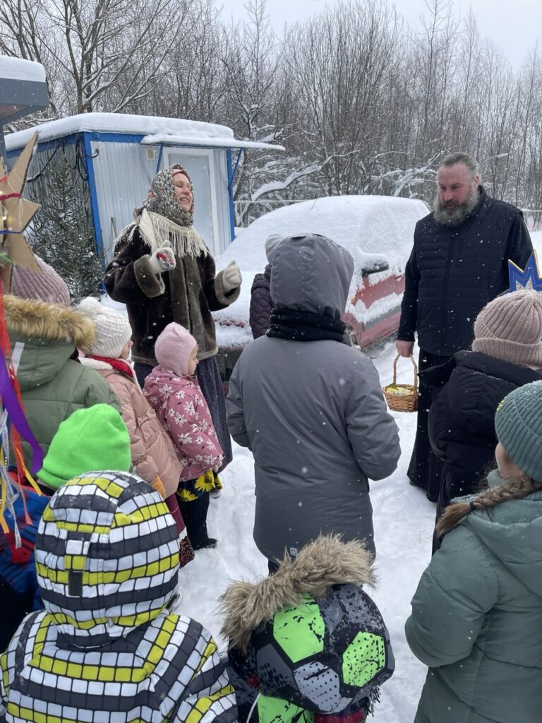 После спектакля, основательно подкрепившись чаем со сладостями, ребята пошли колядовать.